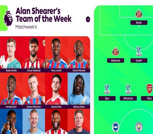 英超官方发布了阿兰-希勒评选的英超第6轮最佳阵容,哈兰德领衔,维尔贝克、格伊、赖斯在列。阿兰-希勒评英超第6...