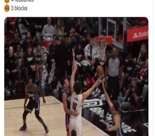 雷速体育10月11报道 NBA季前赛继续进行开拓者124-123击败了国王,中国球员杨瀚森第三节单节5投全中得到了14...