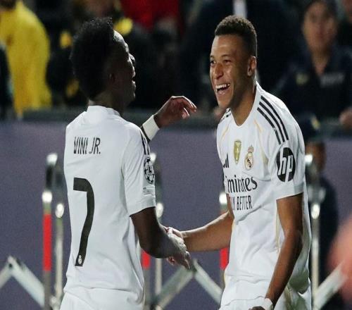 雷速体育10月1报道 欧冠联赛阶段第二轮,皇家马德里客场挑战凯拉特。 比赛第25分钟,姆巴佩点射命中。借此,姆巴...
