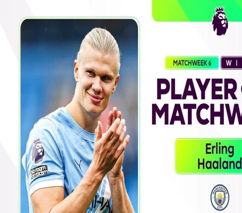 两射一传助曼城大胜,官方:哈兰德当选英超第6轮最佳球员