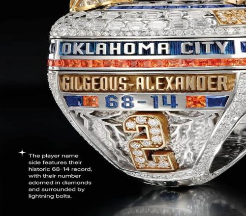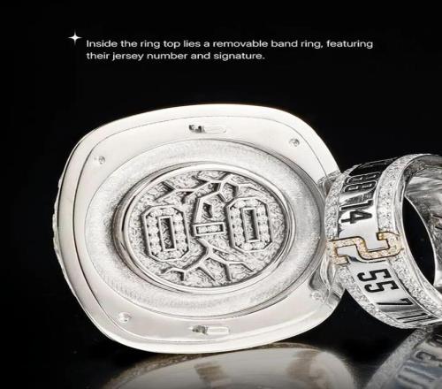 这次雷霆队的戒指依旧充满巧思,延续了可拆卸设计,内部暗藏一枚小戒指,细节也都相当精致,代表着上赛季的冠军征程。