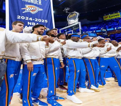 赛前,卫冕冠军雷霆队举办了戒指颁发仪式,同时升起了队史首面总冠军旗帜。