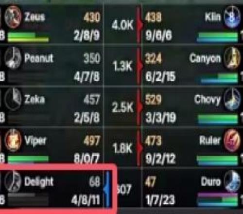 电竞体育10月28报道 S15八强HLE零比二GEN,本局比赛HLE辅助Delight使用波比完全被打出辅助差距,连续冒进送头掉点,最终打出4-8-11的战绩。