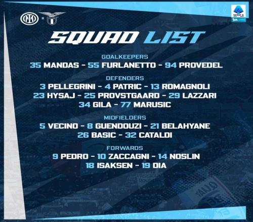 拉齐奥客战国米大名单: