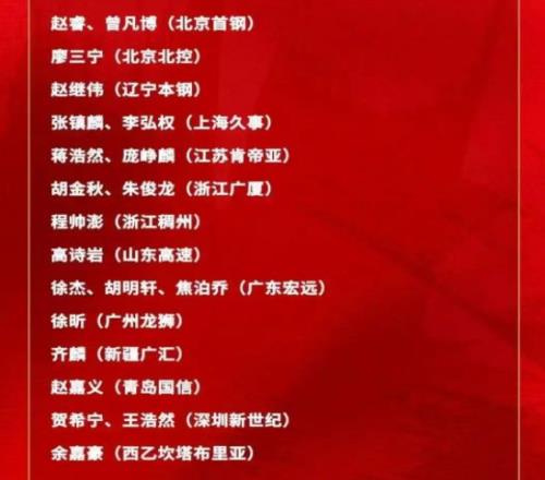 男篮21人实力分档:赵继伟第二档,第一档共6人,广东2将第四档